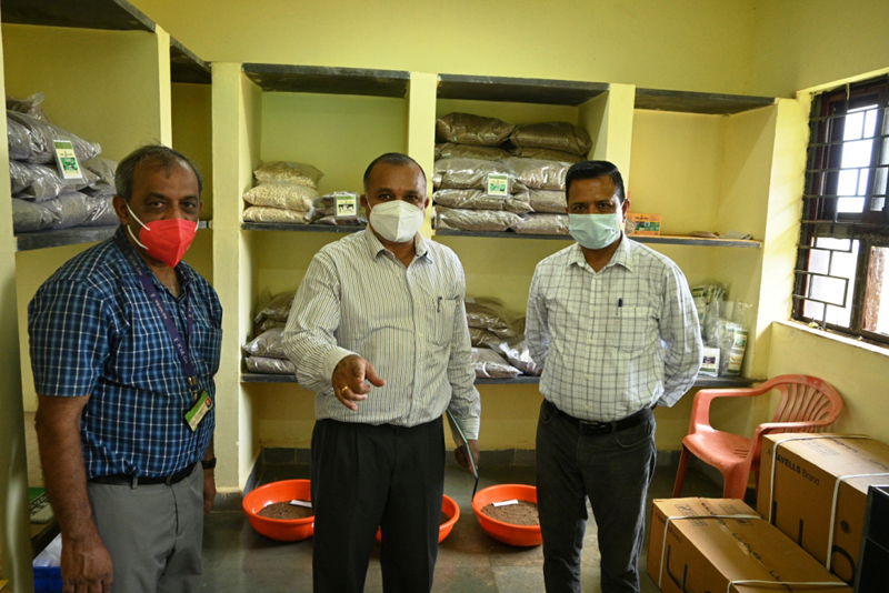 KVK North Goa has recently established a seed unit in its campus to mitigate the problem of unavailability of quality vegetable seeds in Goa. This seed unit was inaugurated by respected Dr. Parveen Kumar, Director, ICAR – CCARI on 27th May, 2021. Dr. B L Kasinath, Head, KVK – North Goa, ICAR welcomed Dr. Parveen Kumar by offering him floral bouquet. After that Director inaugurated the seed unit by cutting ribbon. He also unveiled seed kit and seed packet prepared by KVK. Mr. Dashrath farmer of Karmali village received a seed kit by Director. He also emphasized the importance of availability of quality seeds to Goan farmers at affordable price and applauded the efforts of KVK staff in narrowing the gap to demand & supply of quality seeds in Goa. The programme was attended by entire staff of KVK.
