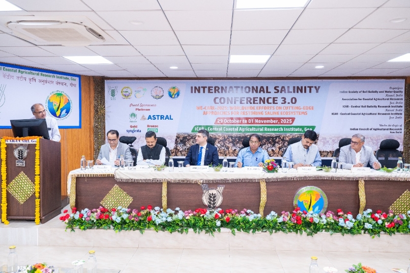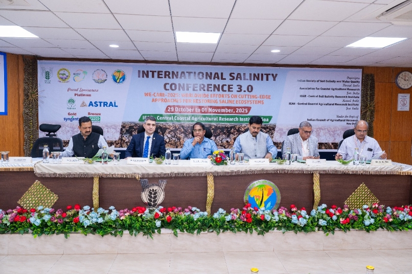 The International Salinity Conference (WE-CARE-2025) concluded today at ICAR-CCARI, Old Goa, Goa. The event was jointly organized by the Indian Society of Soil Salinity and Water Quality (ISSSWQ), Karnal, and the Association for Coastal Agricultural Research (ACAR), Old Goa, in collaboration with ICAR–Central Soil Salinity Research Institute (CSSRI), Karnal, and ICAR–Central Coastal Agricultural Research Institute (CCARI), Goa. The four-day conference, held from 29th October to 1st November 2025, brought together experts from India and abroad to deliberate on global efforts toward managing and restoring saline ecosystems.