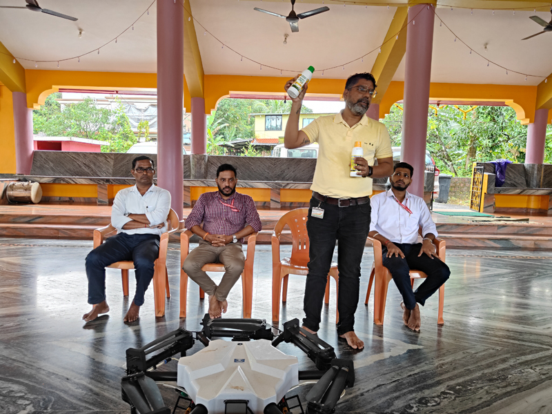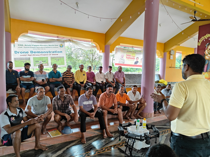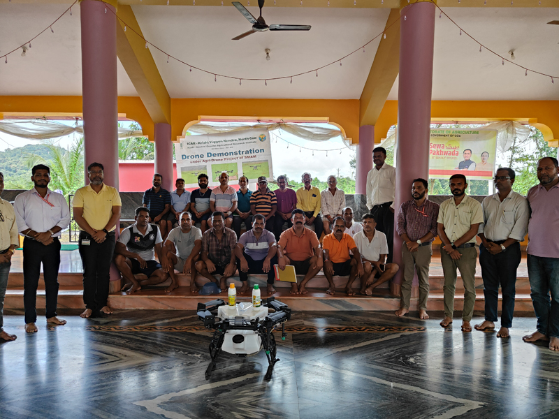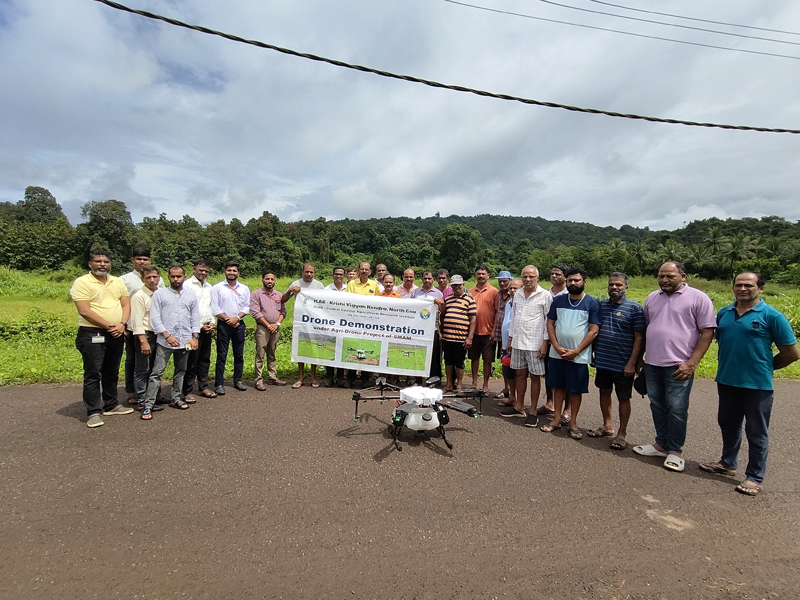 ICAR - Krishi Vigyan Kendra (KVK), North Goa, and ICAR - Central Coastal Agricultural Research Institute (CCARI), Goa, in collaboration with the Zonal Agricultural Office (ZAO), Pernem, and ATMA, North, Government of Goa, organized a demonstration on nano fertilizer s pray using agri-drone under Sewa Pakhwada at Alorna, Pernem, Goa on 25 September, 2025.