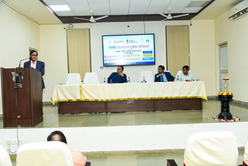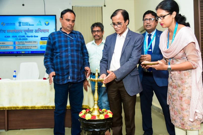 ICAR-Krishi Vigyan Kendra, North Goa, and ICAR-Central Coastal Agricultural Research Institute, Goa, in collaboration with Canara Bank and Bank of Maharashtra, organized a Financial Inclusion Awareness Campaign on September 17, 2025, at the KVK premises. The campaign aimed to educate rural participants about various government social security schemes, digital banking services, and financial literacy initiatives.