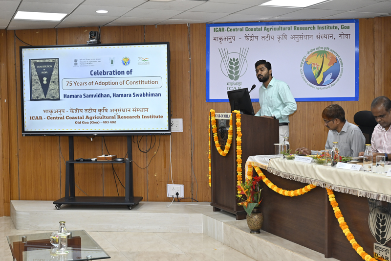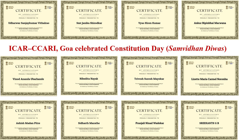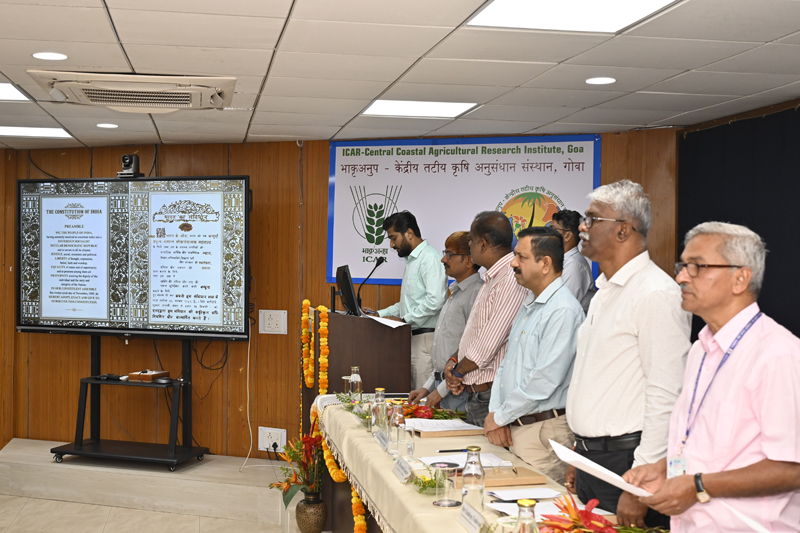 ICAR–Central Coastal Agricultural Research Institute, Goa celebrated Constitution Day (Samvidhan Diwas) on 26th November 2025 with the national theme “Hamara Samvidhan – Hamara Swabhiman.” As the nation commemorates 75 years of the adoption of the Constitution of India, the institute actively participated in this nationwide campaign.