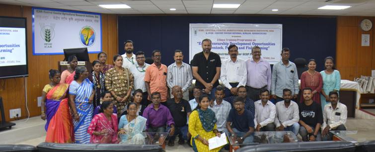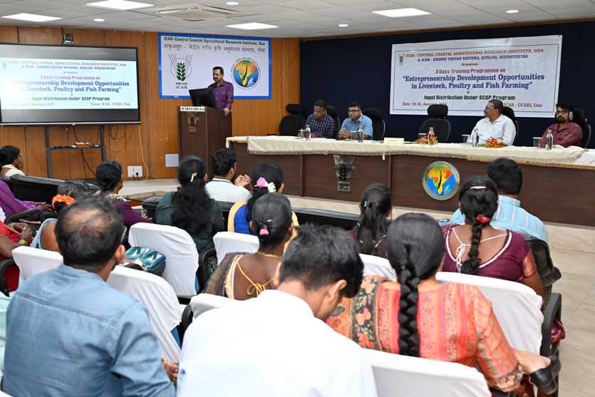 ICAR-CCARI, Goa Conducted Training on ‘Entrepreneurship Development Opportunities in Livestock, Poultry, and Fish Farming’ and Input distribution under SCSP