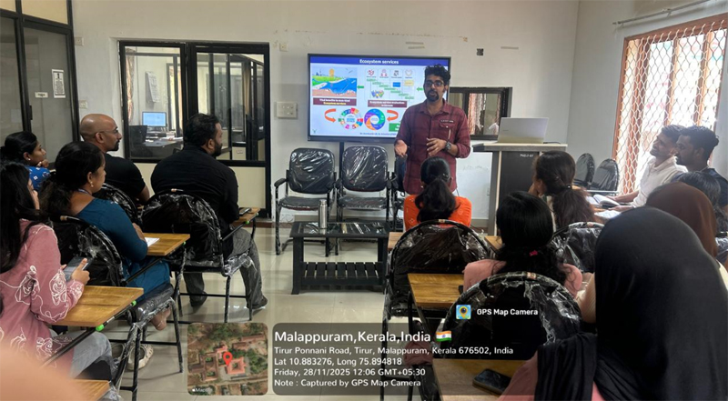 A workshop on ecosystem service analysis of wetlands and estuaries was held on 28 November 2025 at the School of Environmental Studies, Malayalam University, Tirur, in the Malappuram coastal district of Kerala, bringing together 41 participants (7 male and 34 female, including three SC participants) from the School of Environmental Studies. Dr. Sreekanth G. B., Senior Scientist (FRM), ICAR-CCARI, Goa, delivered an expert lecture highlighting the ecological and economic significance of estuarine and wetland ecosystems, covering their key features, fisheries resources, ecosystem service identification, stakeholder involvement, evaluation methodologies, and the development of a Payment for Ecosystem Services (PES) approach. Dr. Arun Babu V., Assistant Professor and Director-in-Charge of the School of Environmental Studies and workshop coordinator, emphasized the importance of ecosystem service analysis for the sustainable management and conservation of wetlands and estuaries. A field visit to the Purathur backwaters provided participants with first-hand exposure to the diverse ecosystem services of estuarine systems. The participants appreciated the insights gained and expressed their commitment to contributing to a comprehensive ecosystem service analysis framework for estuarine and wetland ecosystems, with a focus on Beeyam Kayal and the Ponnani estuary.
