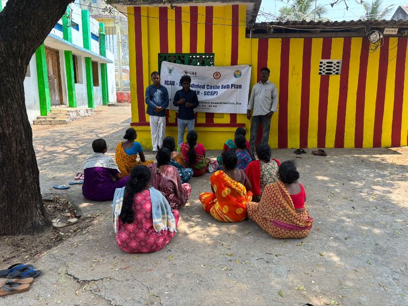 The Institute conducted an awareness programme on vaccination and deworming in livestock and poultry at Rameshwaram, Tamil Nadu on 28 February 2026, in collaboration with the Animal Husbandry Department, Tamil Nadu under SCSP. During the programme, Dr. Vaitheeswaran, Veterinary Assistant Surgeon, Rameshwaram, sensitized farmers on the importance of timely vaccination and deworming in livestock and poultry. He explained the symptoms of important bacterial, viral, and protozoal diseases affecting cattle and poultry, along with appropriate preventive measures and recommended vaccination and deworming schedules.Dr. Udharwar Sanjaykumar Vithalrao, Subject Matter Specialist (Animal Science), delivered a session on scientific dairy management practices with special emphasis on clean milk production and hygienic handling to improve milk quality and farmers’ income.A total of 11 Scheduled Caste farmers, including 10 female and 1 male, benefited from the awareness programme.The programme was successfully coordinated by Dr. Udharwar S.V., Dr. Sreekanth G.B., and Dr. Vaitheeswaran.