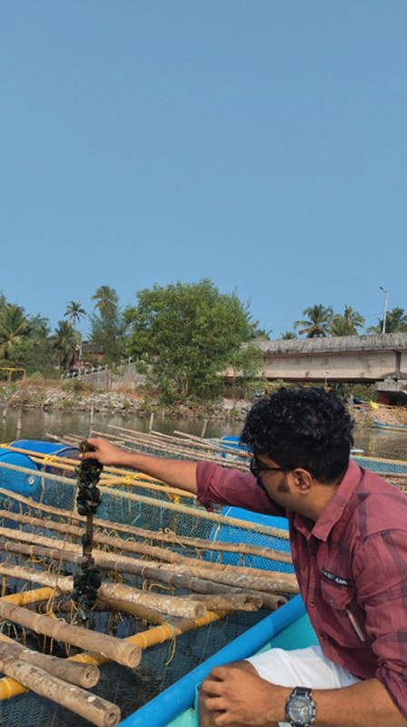 An awareness programme and field day on Integrated Multitrophic Aquaculture and Aqua-Eco-Tourism under the Scheduled Caste Sub Plan (SCSP) was organized by ICAR-CCARI, Goa on 2 January 2026 at Kodi, Udupi. The event was coordinated by Dr. Sreekanth G.B., Senior Scientist, and attended by Dr. Anish from Manipal Academy-Udupi, Shri Sudina, Managing Director of Udupi Kinara FFPO, along with 12 SC farmers (3 male and 9 female) and students from Manipal Academy-Udupi. A field visit was conducted to a fish farm at the Sastana estuary, showcasing mussel culture, cage culture of red snapper and pearlsport, and crab fattening. Dr. Sreekanth advised farmers to develop the site as a model Integrated Multitrophic Aquaculture (IMTA) farm, incorporating oyster farming. He also emphasized upgrading aqua-eco-tourism activities through awareness on fisheries, mangroves, estuarine ecosystems, small-scale fish processing, and traditional fish cafés for kayaking and boating visitors. The value addition of the local fish and development of the products were also discussed to include as a part of the aqua-eco-tourism. He assured support in linking farmers to markets in Goa and Maharashtra. Dr. Anish highlighted the role of academic collaboration in sharing knowledge on aquatic ecosystems, engaging students in capacity building, and promoting traditional livelihood systems. Mussel seeds ropes, coir ropes, traps were distributed to the farmers during the programme. Participating farmers expressed their gratitude for the support and pledged full cooperation in ongoing research and development initiatives.
