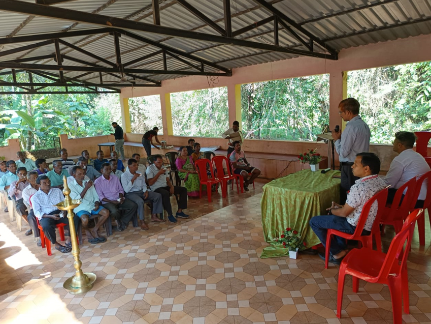 The ICAR-Central Coastal Agricultural Research Institute (CCARI), Goa, organized one day training and input distribution programme focused on Cashew under the Tribal Sub Plan Scheme sponsored by the Directorate of Cashew Research (DCR), Puttur, Karnataka, held on November 18, 2025, at Vantem Village of Sattari Taluka, North Goa. Shri Vishwanath Gawas, ZAO Sattari welcomed the farmers, officials, and scientists. He highlighted departmental schemes for horticulture crops cultivated in the vicinity. Dr. Akula Chinapolaiah, Senior Scientist, ICAR-CCARI, Goa, provided an overview of the institute’s activities and achievements with emphasis on cashew research and cultivation practices as well as new technologies available to support farmers. He emphasizes the benefits of intercropping in plantation crops and good agricultural practices as a means to generate additional income. Shri Omar de Souza, Technical Officer, ICAR-CCARI, Goa stressed the importance of high-quality planting material and the package of practices for cashew cultivation and post-harvest management to achieve good yields. Soil sample collection was demonstrated to the farmer participants by the ZAO officials. Agricultural inputs such as pruning saws, koitas, gamelas, vermicompost, and cashew grafts (Goa Cashew 4) were distributed to 30 beneficiaries from the scheduled tribe community. The program concluded with a vote of thanks proposed by Shri Omar de Souza. The programme was coordinated by Dr. Akula Chinapolaiah, Senior Scientist, ICAR-CCARI, Goa, Shri Omar de Souza, Technical Officer, ICAR-CCARI, Goa, and Mr. Sidhant Haldankar, Research Assistant, AICRP-Cashew with the support of Shri Vishwanath Gawas, ZAO Sattari, and his team.